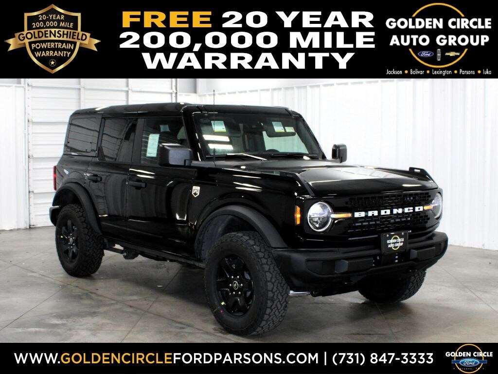 FREE 20 YEAR / 200,000 MILE POWERTRAIN WARRANTY, 4X4 FOUR WHEEL DRIVE, BLUETOOTH, SIRIUS XM SATELLITE RADIO, MICROSOFT/FORD SYNC, APPLE CARPLAY, GOOGLE ANDROID AUTO, NAVIGATION SYSTEM GPS NAV, STEERING WHEEL AUDIO CONTROLS, TOUCH SCREEN CONTROLS, BACKUP CAMERA, KEYLESS PUSH BUTTON START, COLLISION AVOIDANCE SYSTEM, HEATED FRONT CLOTH SEATS, REMOTE START, BIG BEND SERIES, BLACK APPEARANCE PACKAGE, EQUIPMENT PACKAGE 222A MID PACKAGE, 18" BLACK HIGH GLOSS PAINTED ALUMINUM WHEELS, 4.46 AXLE RATIO, 7 SPEAKERS, AIR CONDITIONING, BLACK MOLDED-IN-COLOR DOOR HANDLES, BLACK MOLDED-IN-COLOR FENDER FLARES, BLACK MOLDED-IN-COLOR SIDEVIEW MIRROR CAPS, BLACK-PAINTED MOLDED-IN-COLOR GRILLE, BLIS BLIND SPOT INFORMATION SYSTEM, BRAKE ASSIST, COMPASS, DELAY-OFF HEADLIGHTS, DRIVER VANITY MIRROR, DUAL FRONT IMPACT AIRBAGS, DUAL FRONT SIDE IMPACT AIRBAGS, DUAL-ZONE ELECTRONIC AUTOMATIC TEMPERATURE CONTROL, EMERGENCY COMMUNICATION SYSTEM: 911 ASSIST, HARD TOP SOUND DEADENING HEADLINER, HEATED DOOR MIRRORS, INTEGRATED ROLL-OVER PROTECTION, INTERNET ACCESS CAPABLE: FORDPASS CONNECT, LANE-KEEPING SYSTEM, LEATHER SHIFT KNOB, LOW TIRE PRESSURE WARNING, OCCUPANT SENSING AIRBAG, OUTSIDE TEMPERATURE DISPLAY, OVERHEAD CONSOLE, PANIC ALARM, PASSENGER VANITY MIRROR, POWER DOOR MIRRORS, POWER WINDOWS, REAR PARKING SENSORS, REAR-WINDOW DEFROSTER & WASHER, REMOTE KEYLESS ENTRY, SHADOW BLACK PAINTED HARD TOP, TELESCOPING STEERING WHEEL, TILT STEERING WHEEL. Price includes: $2500 - Retail Customer Cash. Exp. 03/31/2026