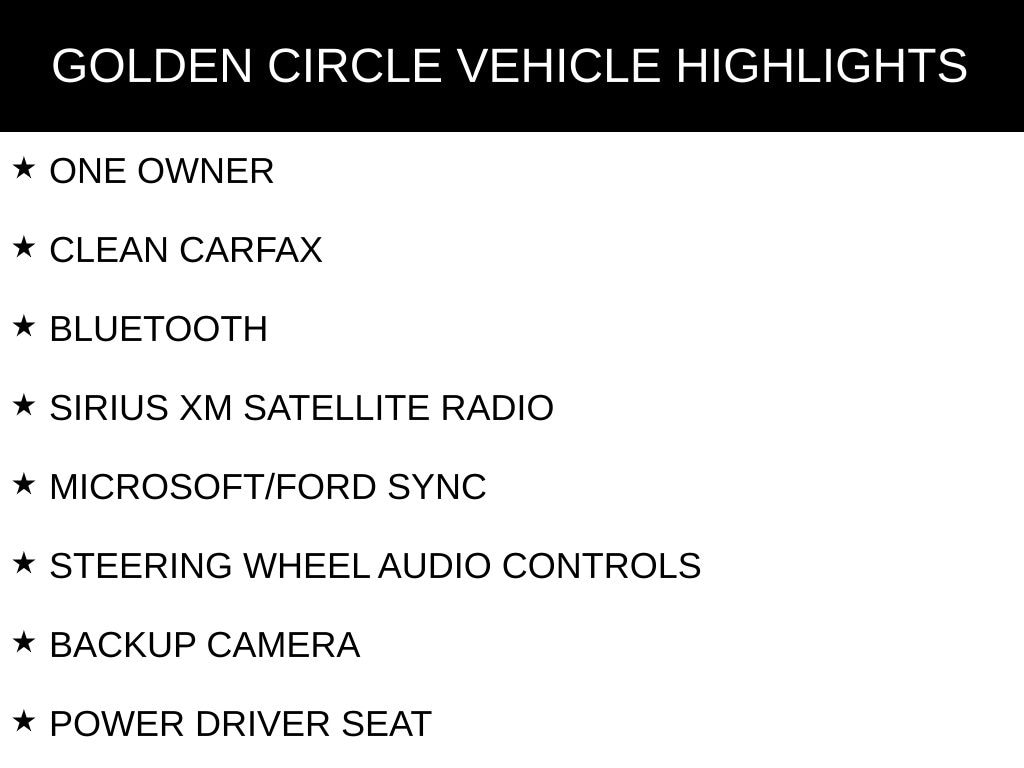 ONE OWNER, CLEAN CARFAX, BLUETOOTH, SIRIUS XM SATELLITE RADIO, MICROSOFT/FORD SYNC, STEERING WHEEL AUDIO CONTROLS, BACKUP CAMERA, POWER DRIVER SEAT, DROP-IN BEDLINER, TOW PACKAGE / TRAILER PACKAGE, ALL WEATHER FLOOR MATS, XLT SERIES, EQUIPMENT PACKAGE 301A MID, 17" SILVER PAINTED ALUMINUM WHEELS, 3.73 AXLE RATIO, 6 SPEAKERS, AIR CONDITIONING, AUTO-DIMMING REAR-VIEW MIRROR, COMPASS, DELAY-OFF HEADLIGHTS, DRIVER VANITY MIRROR, DUAL FRONT IMPACT AIRBAGS, DUAL FRONT SIDE IMPACT AIRBAGS, ELECTRONIC STABILITY CONTROL, EMERGENCY COMMUNICATION SYSTEM: 911 ASSIST, FIXED BACKLIGHT W/PRIVACY GLASS, FRONT CENTER ARMREST W/STORAGE, FRONT FOG LIGHTS, ILLUMINATED ENTRY, LOW TIRE PRESSURE WARNING, OCCUPANT SENSING AIRBAG, OUTSIDE TEMPERATURE DISPLAY, PANIC ALARM, PASSENGER VANITY MIRROR, POWER GLASS HEATED SIDEVIEW MIRRORS, POWER WINDOWS, REAR UNDER-SEAT STORAGE, REAR WINDOW DEFROSTER, REMOTE KEYLESS ENTRY, SPEED-SENSING STEERING, TELESCOPING STEERING WHEEL, TILT STEERING WHEEL, TRACTION CONTROL, VARIABLY INTERMITTENT WIPERS.